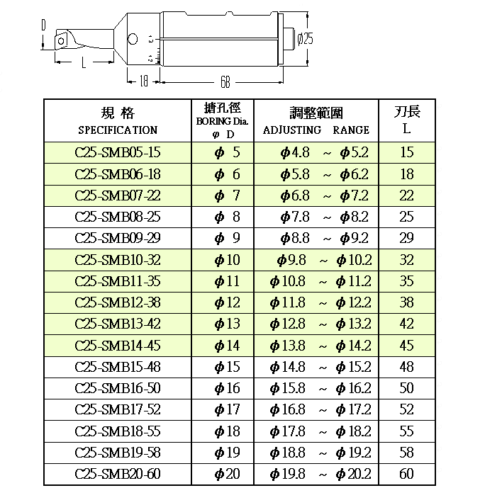 轉動調整至所需尺寸(一小格為φ0.02mm) |
